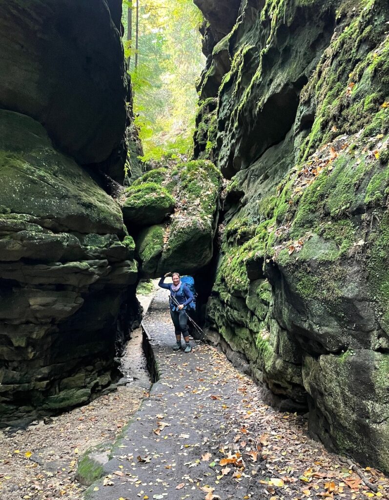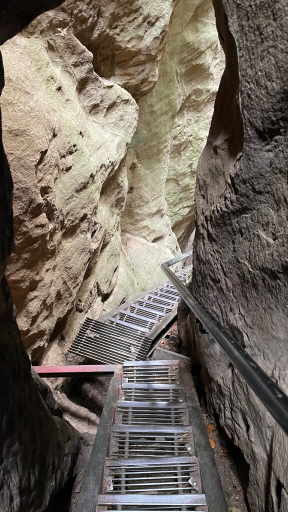 Über Treppen und Leitern ging es durch Felsen hindurch Richtung Hohnstein. Das Etappenziel der 2ten Etappe und mein Tagesziel.
